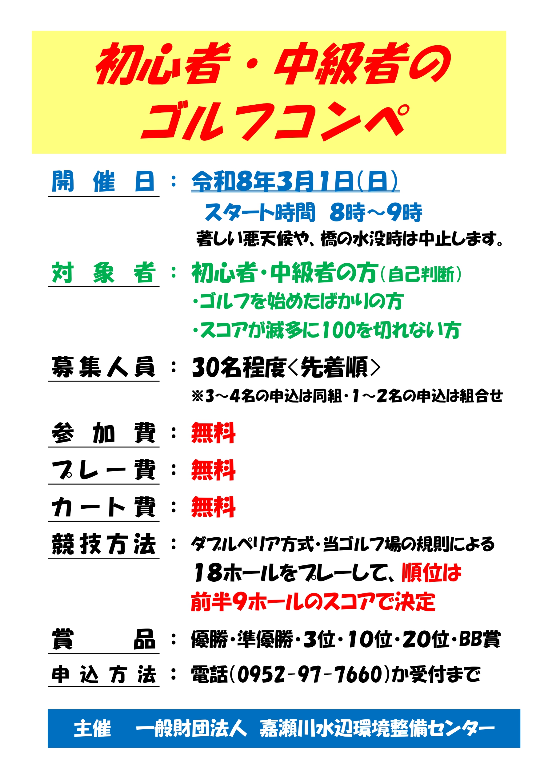 初心者・中級者の方を対象としたゴルフコンペを開催します。(無料です。)